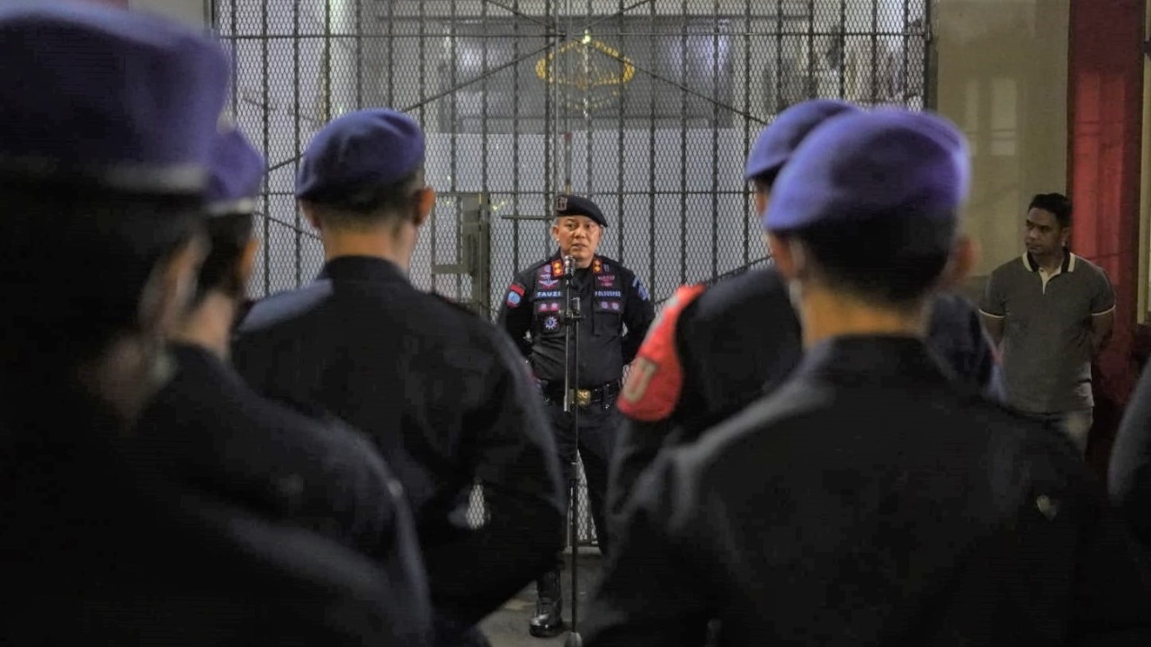 JAKARTA – Kepala Rutan Kelas I Jakarta Pusat Fauzi memimpin langsung pelaksanaan apel bersama pada malam pergantian tahun.